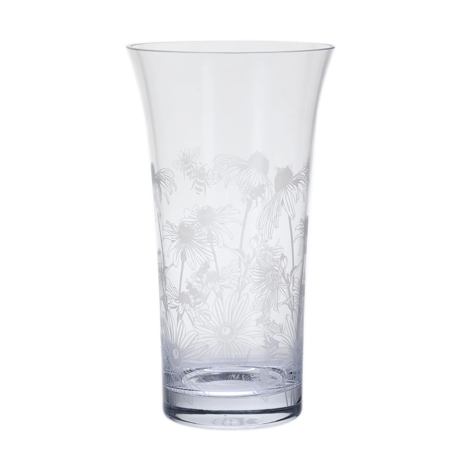 Bloom is a collection of lovely hand-made vases, each elegantly finished with an etch-decorated bloom. This stunning flared vase is decorated with Bees & Rudbeckia. It is a perfect gift or addition to your living space.